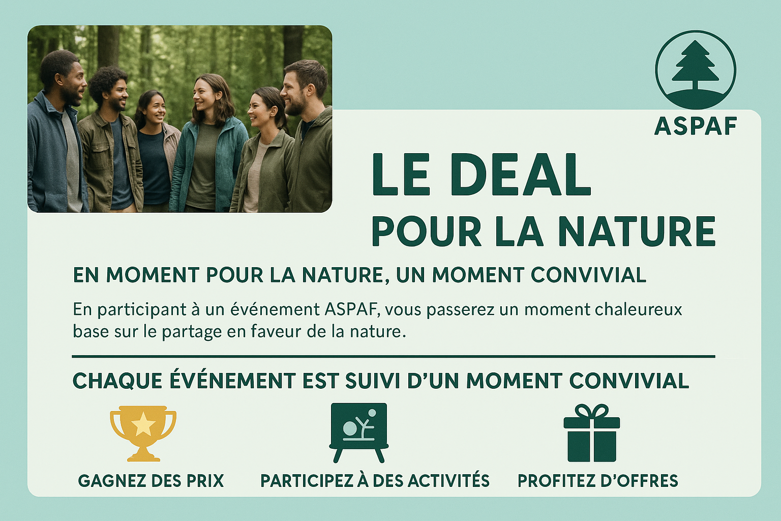 Avant de faire un geste concret pour l’environnement, nous voulons créer une expérience agréable et humaine. En participant à un événement ASPAF, vous vivez un moment de partage et de rencontre, car chaque action est suivie d’un temps convivial : animations, activités offertes, concours et de nombreux prix à gagner.